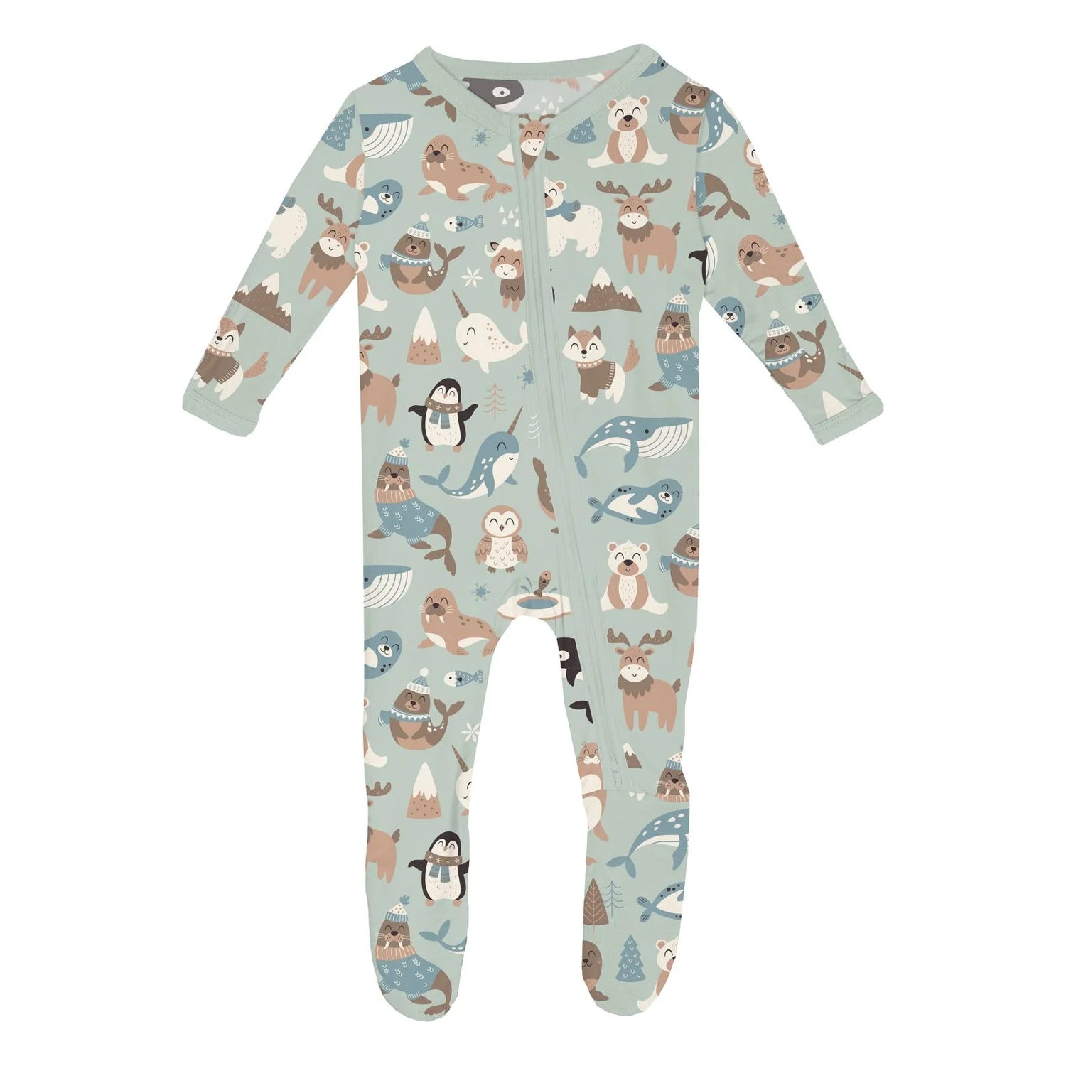 KicKee Aloe Arctic Animals | Print Footie With 2 Way Zipper