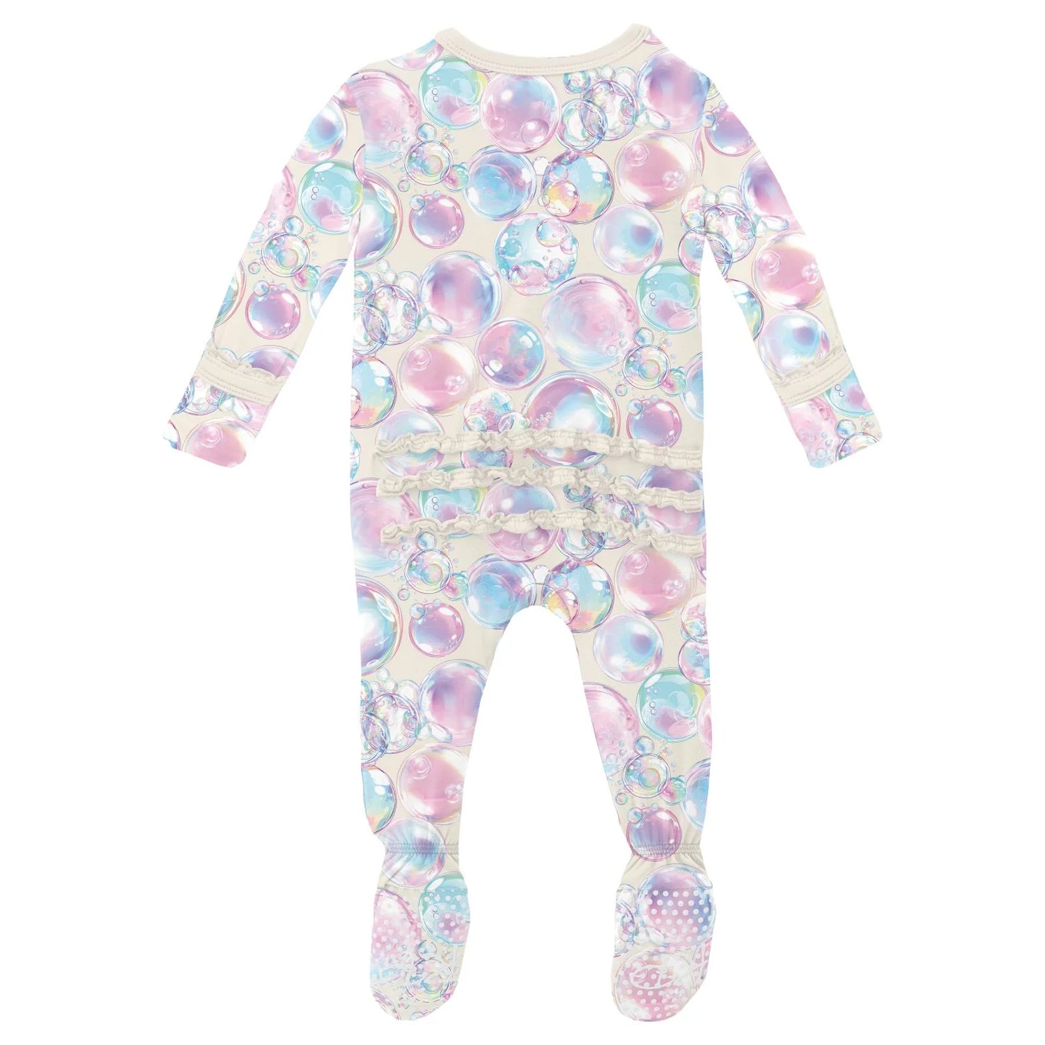 KicKee Natural Bubbles | Print Layette Ruffle Footie With 2 Way Zipper
