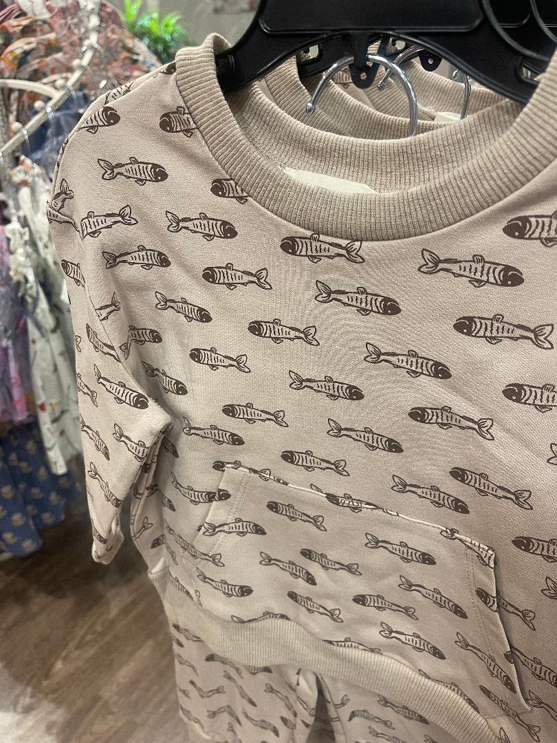 Soft, cozy, and perfect for every little explorer, the Isaiah two piece set combines playful moments with everyday comfort. This light beige sweatshirt and pants set features an adorable fish motif in a darker tone, complete with ribbed cuffs and an elastic waistband for easy movement. Thoughtfully designed for style and comfort, it?s an effortless choice for fun-filled days at home or out.