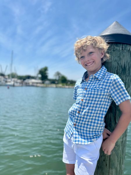 The blue and white plaid woven shirt is a classic and timeless choice for your little guy!