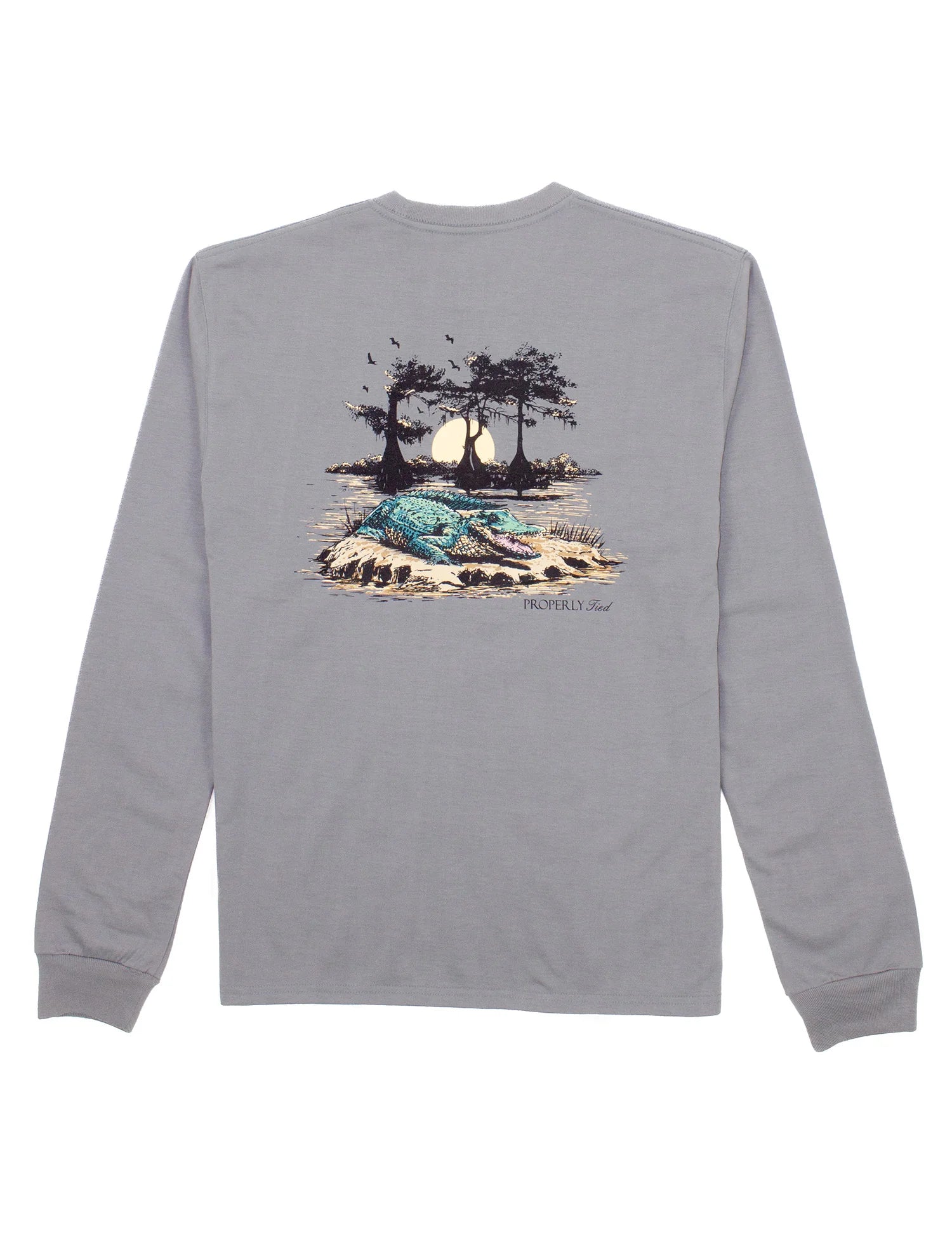 Properly Tied Battleship Grey | Bayou Gator Long Sleeve Pullover