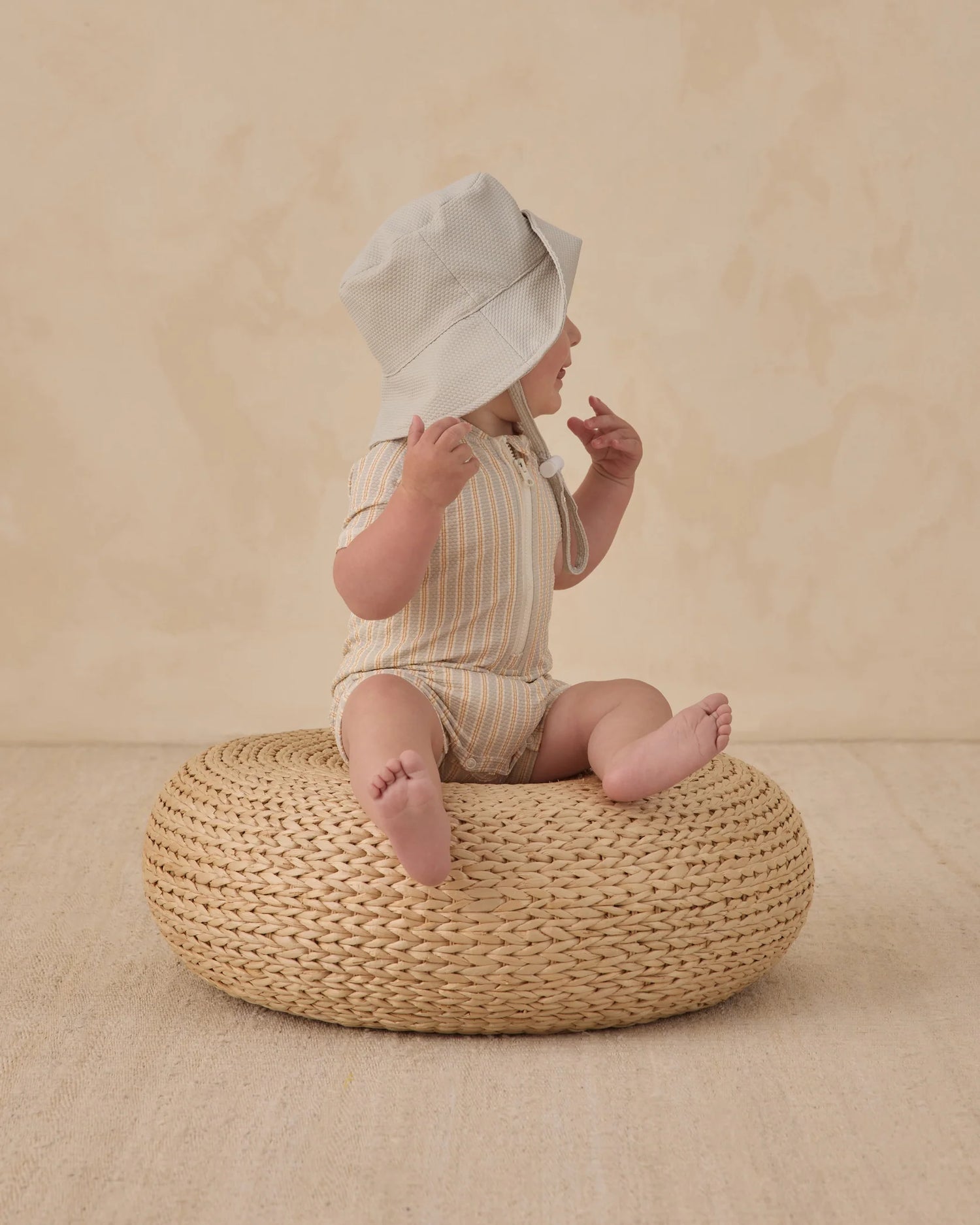 Quincy Mae Blue + Butterscotch Stripe | Zip Rash Guard One-Piece