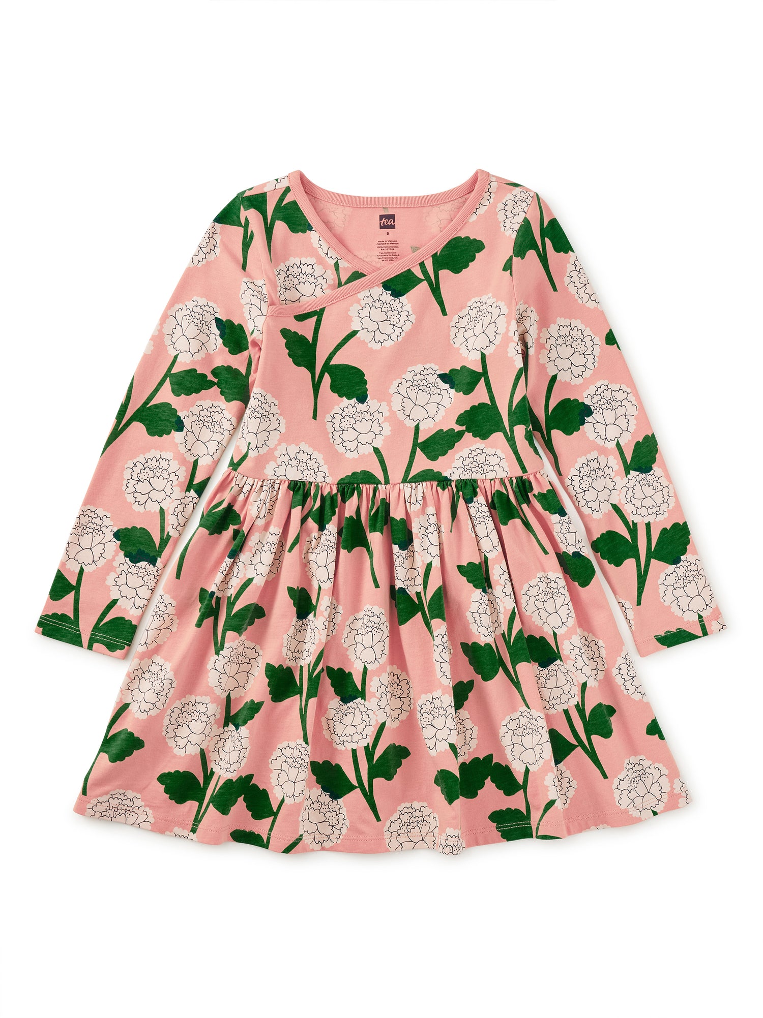 Tea Chrysanthemums | Long Sleeve Wrap Neck Dress