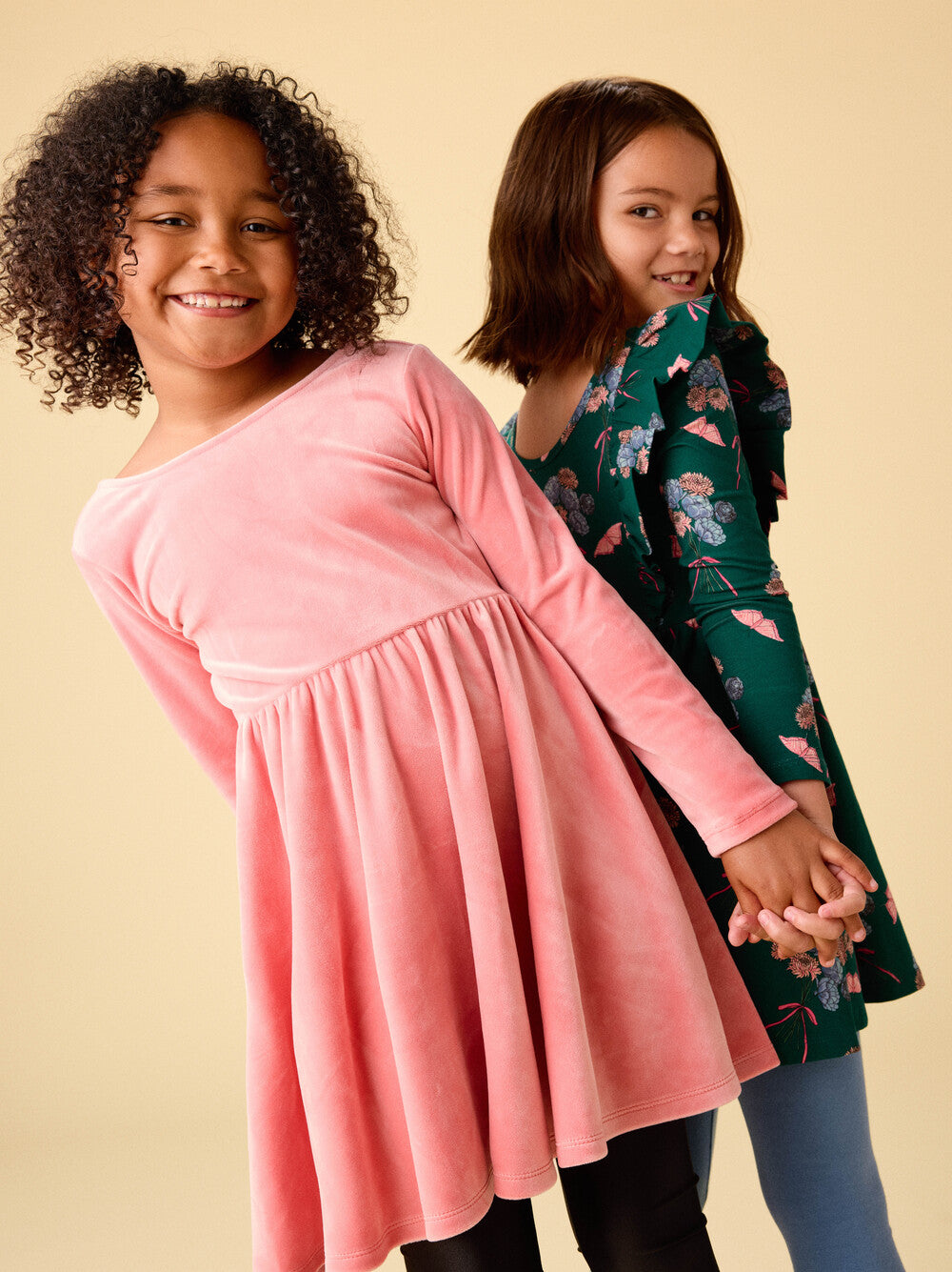 A twirl-ready favorite with a sweet and stylish twist. The ruffle shoulder detail adds just the right touch of flair, while the scooped back neckline gives it a dressy feel. Featuring South Korean inspired prints created by our in-house artists, this heirloom-worthy style celebrates the beauty of global design. Comfy enough for all-day play and polished enough for holiday gatherings or family photo moments, it's made for memory-making spins.