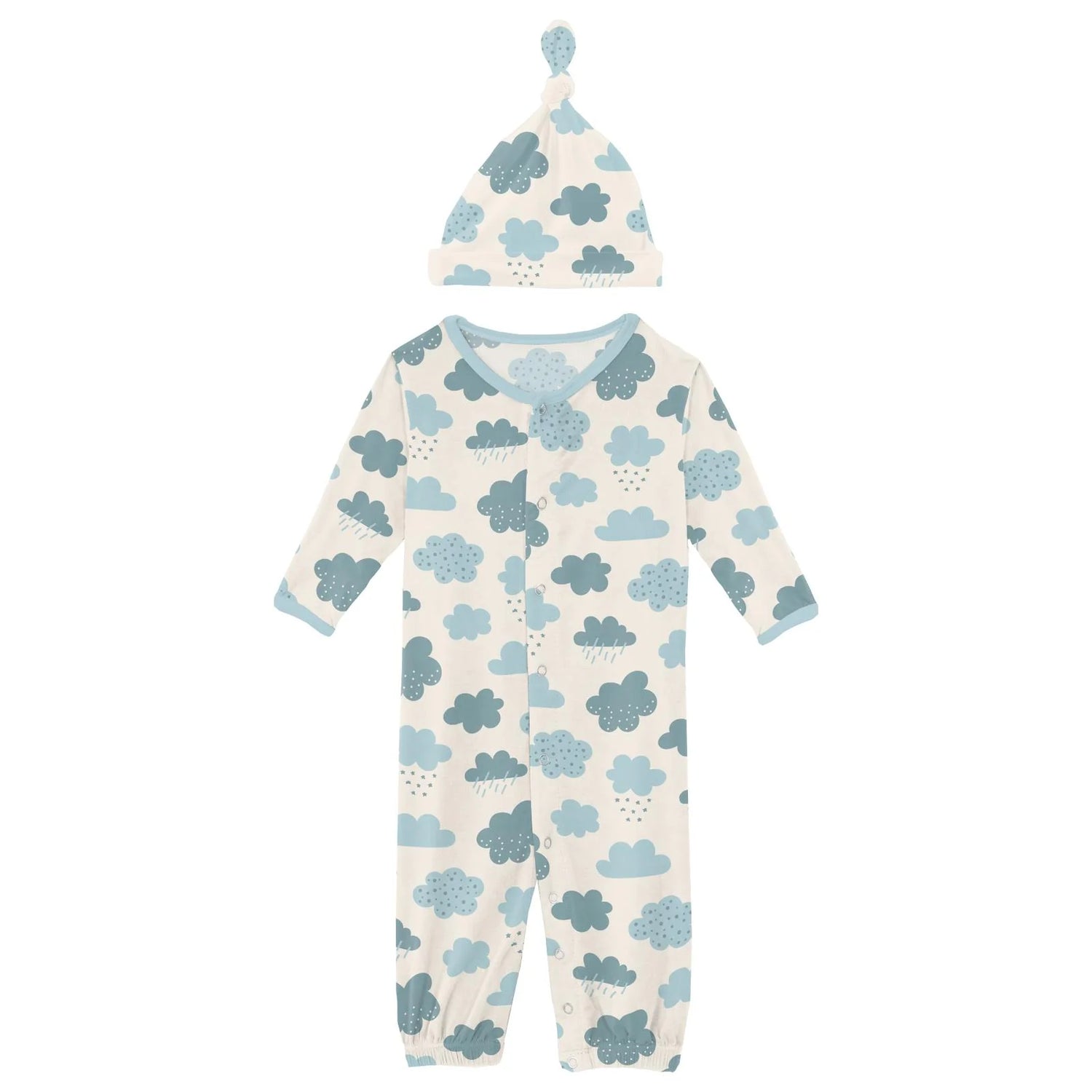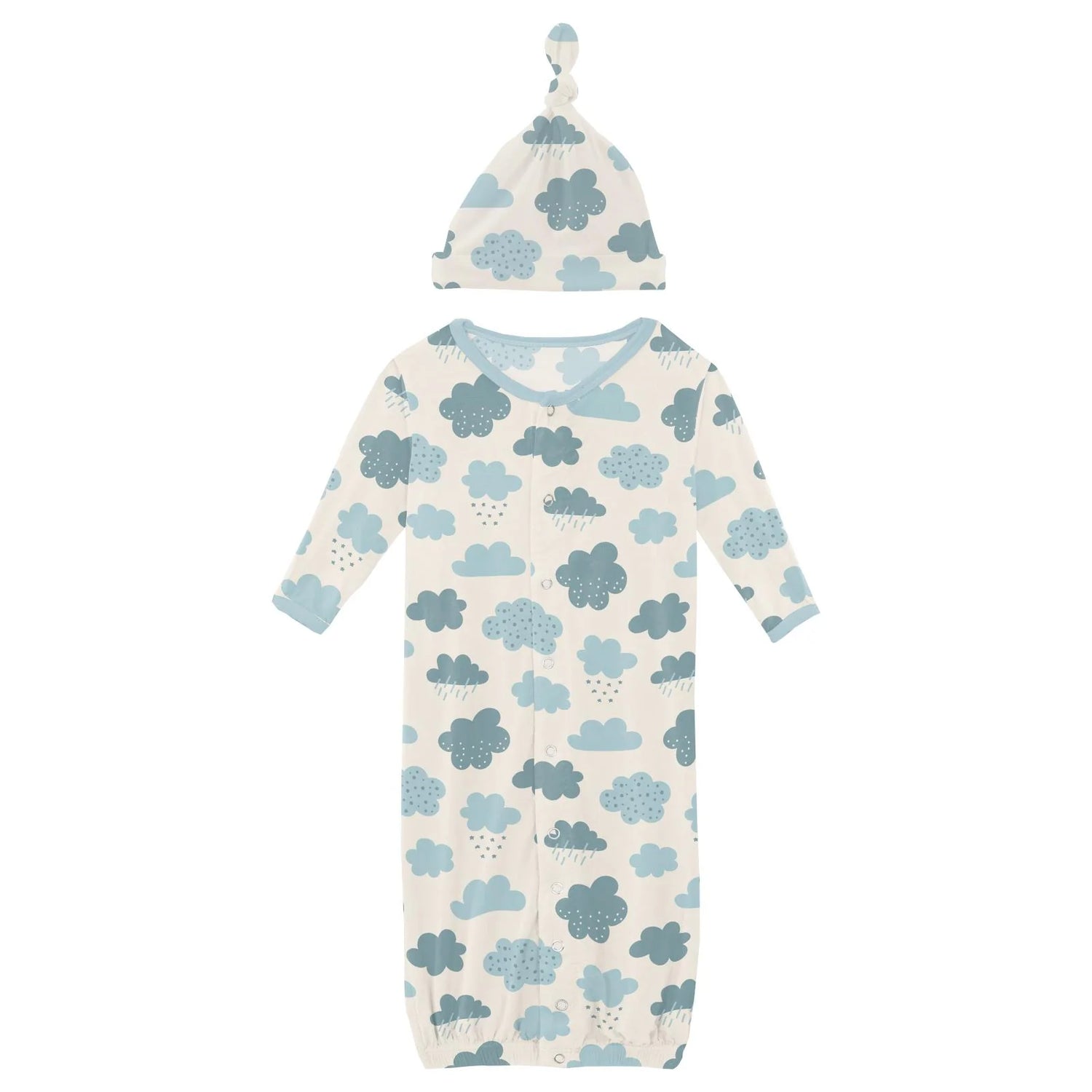Tea Natural Cloudy Sky | Print Layette Gown Converter & Knot Hat Set