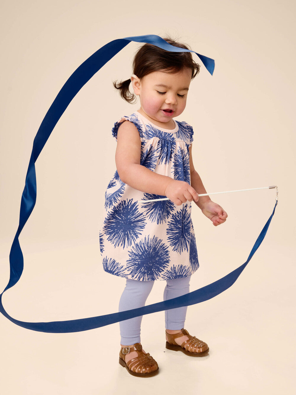 Inspired by our travels around the world, our designers created this original print of lush florals. The Mighty Mini is a customer-favorite thanks to its ease-of-wear and sweet styling details like ruffle sleeve sleeves and cute patch pocket. Pairs perfectly with leggings for cooler weather, and bare legs later. Crafted from 100% soft cotton jersey. Below mid-thigh length.