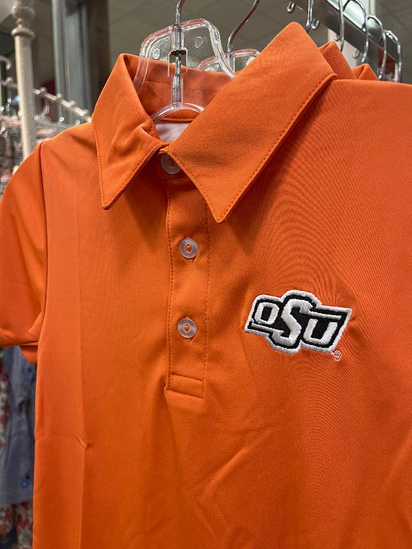 This solid Orange Polo features officially licensed Oklahoma State Cowboys chest embroidery; perfect to cheer for your favorite team.